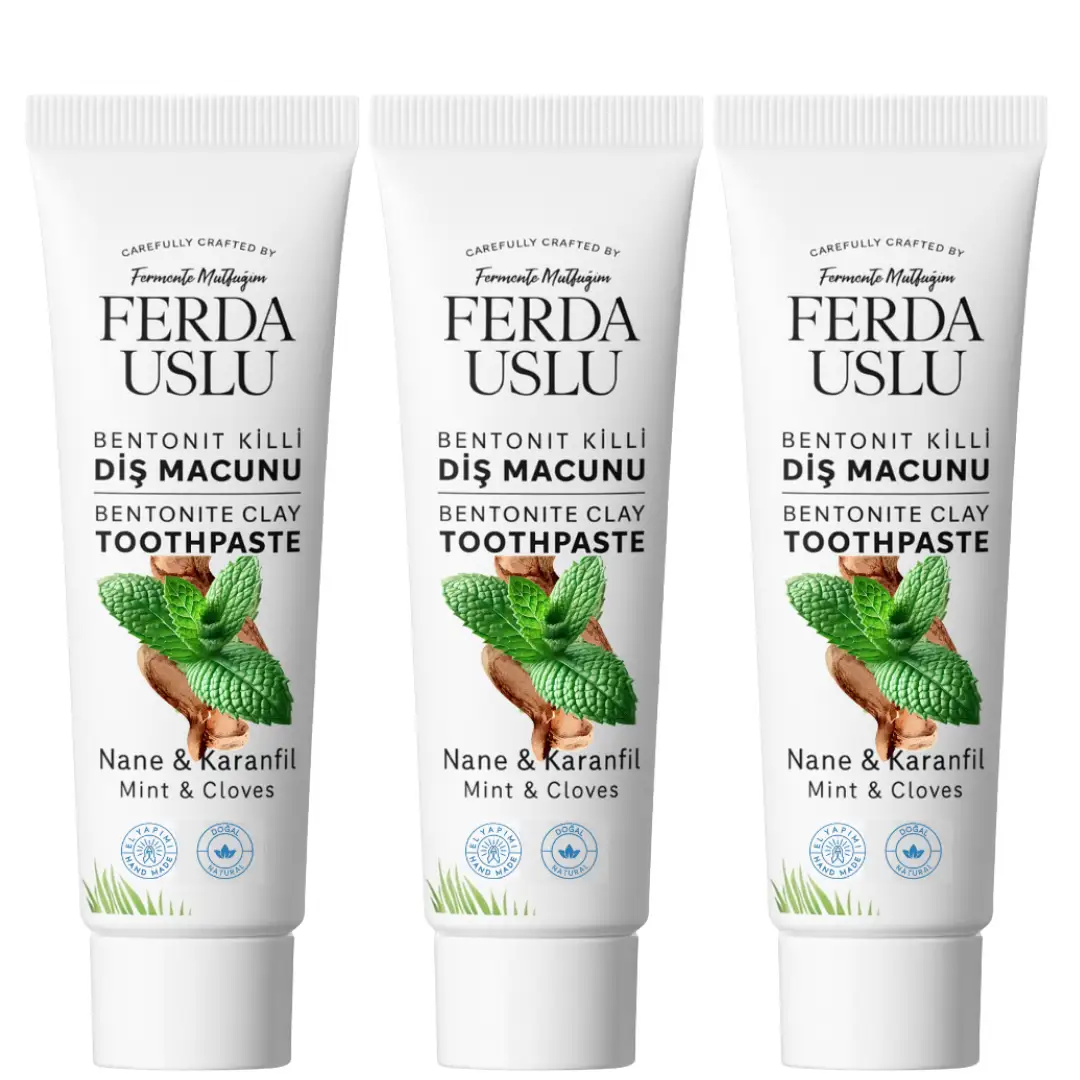 Bentonit kilinin güçlü detoks etkisi ve mineral zenginliği sayesinde dişleri etkili bir şekilde temizlerken ağız içini toksinlerden arındırmaya yardımcıdır. İçerisindeki doğal nane ve karanfil yağları sayesinde ağızda uzun süren bir ferahlık sağlar ve ağız kokusunun önlenmesine yardımcı olur.