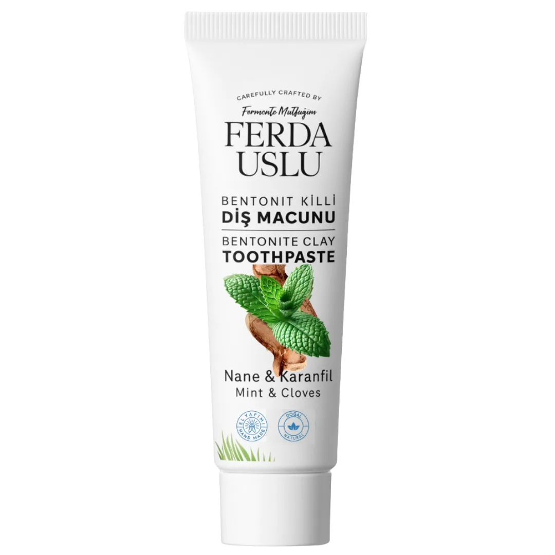 Bentonit kilinin güçlü detoks etkisi ve mineral zenginliği sayesinde dişleri etkili bir şekilde temizlerken ağız içini toksinlerden arındırmaya yardımcıdır. İçerisindeki doğal nane ve karanfil yağları sayesinde ağızda uzun süren bir ferahlık sağlar ve ağız kokusunun önlenmesine yardımcı olur.