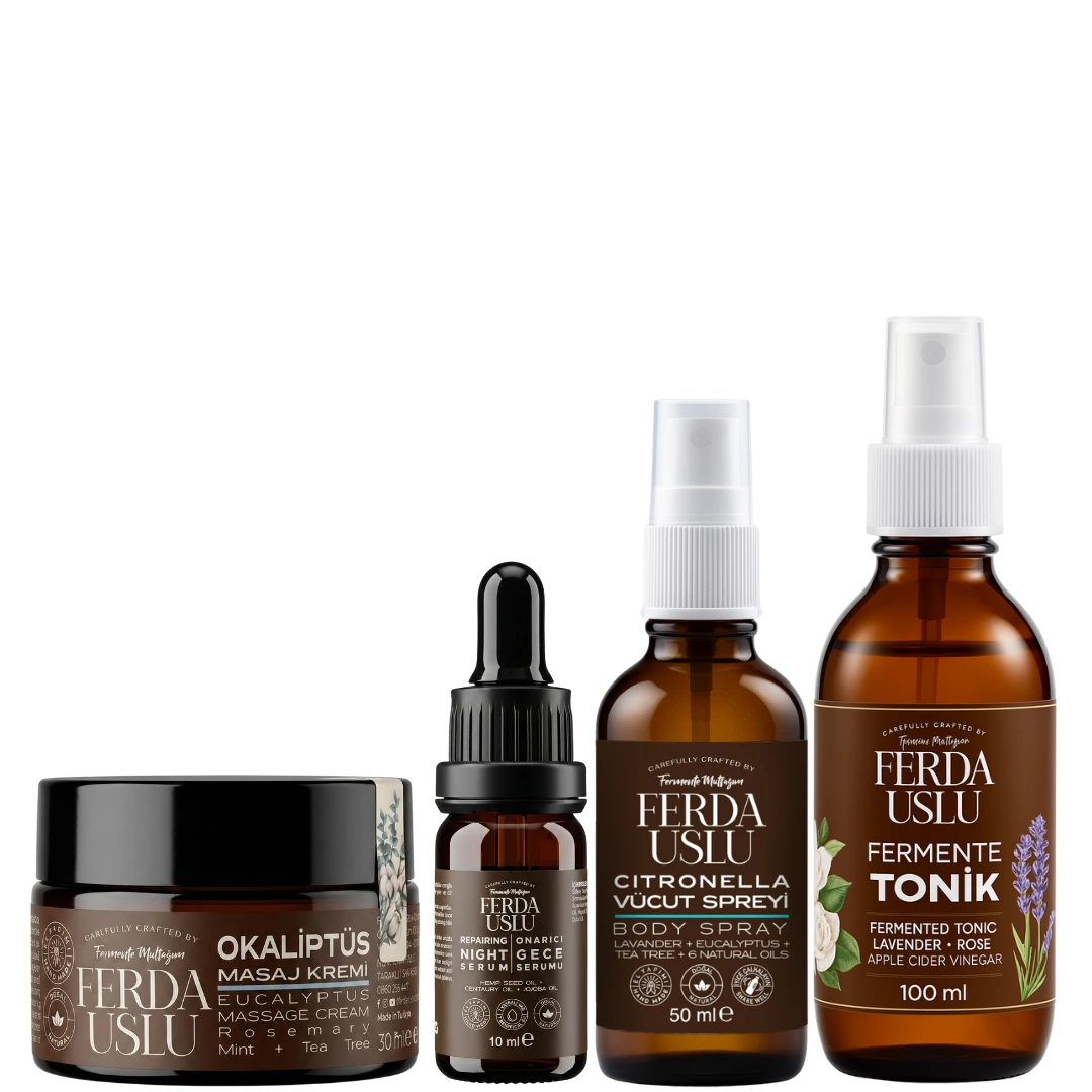 Güzelliğin içten dışa doğru yansıdığı bilinciyle bir araya getirdiğimiz %100 yenilebilir, doğal içeriklerden oluşan güzellik bahçesi paketi, gerçekten etkili ürünlerden oluşuyor. Bunlar kadın, erkek ve çocukların bile seve seve gönül rahtlığıyla kullanabileceği, her cilt ve saç tipine uygun ürünler. Tamamı el işçiliği ile üretildiler. Ferda Uslu güvencesi ve tecrübesiyle size sunuluyor.
