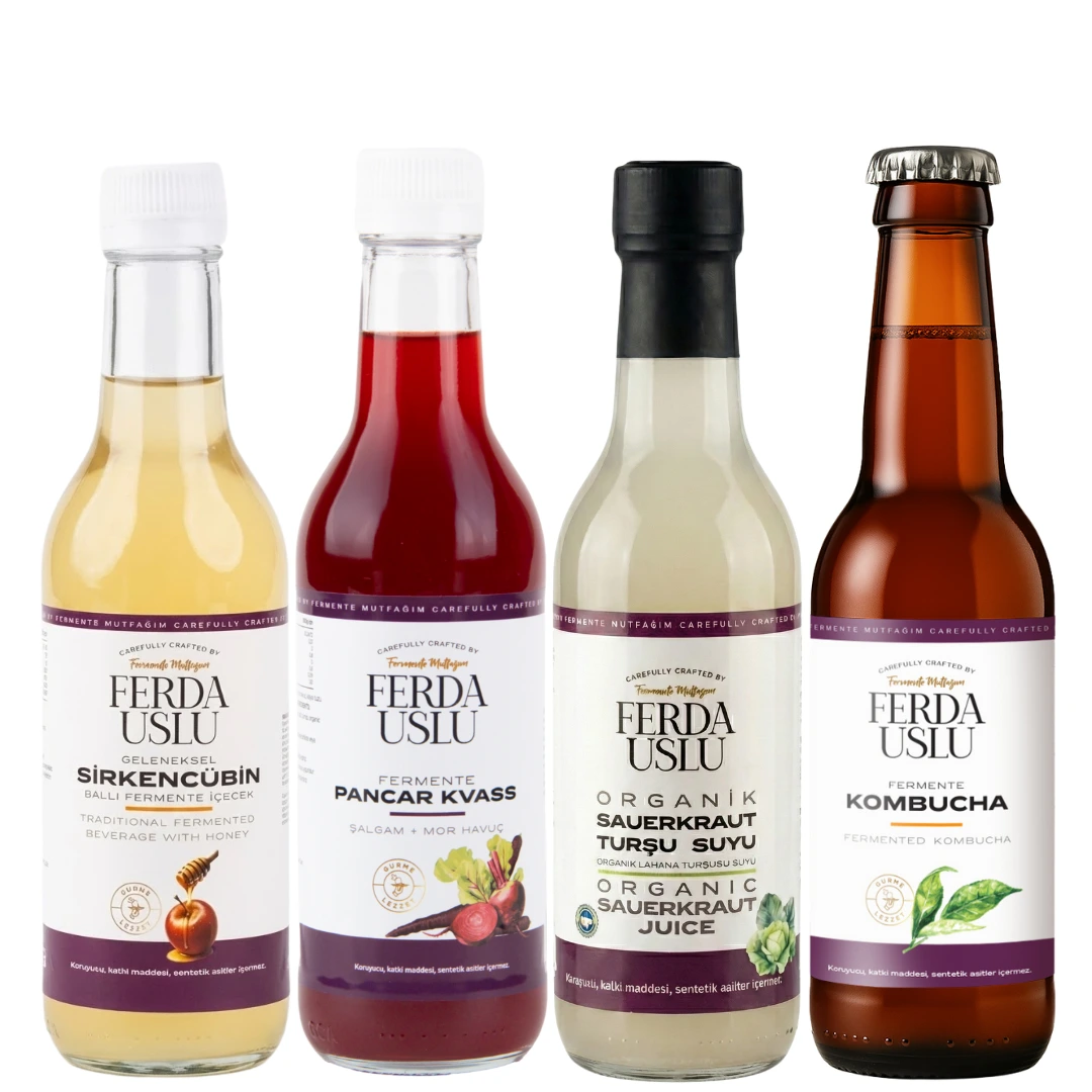Doğal fermantasyonla hazırlanan içeceklerden oluşan, katkı maddesi ve sentetik asit içermeyen bu özel seri; hem geleneksel hem modern damaklara hitap eden, günlük tüketime uygun dört benzersiz içeceği bir araya getiriyor. Her biri özenle fermente edilmiş, canlı ve aromatik yapısıyla hem lezzet hem de alışkanlık kazandıran bir deneyim sunuyor.